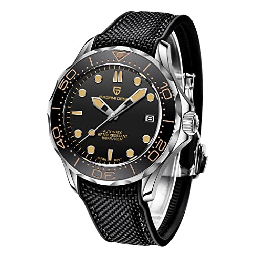 PAGANI DESIGN Herrklocka vattentät självlysande rostfritt stål japansk rörelse syntetisk safir kristall böjd spegel med en roterande keramisk infattningsklocka, Helt svart Pagani Design 1667, armband