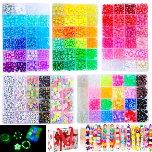 SJZWSD 5 lådor armband tillverkning kit ponny pärlor, kandi-pärlor och hårpärlor set med UV-färgändring, självlysande i mörkret, krom och alfabet bokstäver för vänskap smycken gör-det-själv hantverk