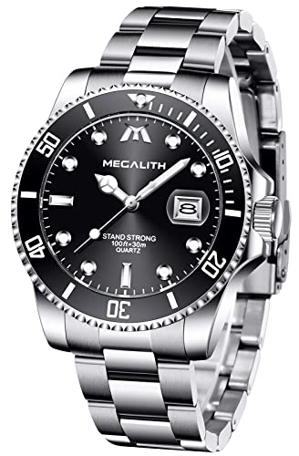 MEGALITH Herrklocka 40 mm analog kvartsur rostfritt stål vattentäta klockor för män, självlysande armbandsur med datum – affärsgåva för män, A1-silver svart, Standard, armband