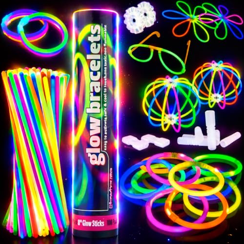 The Glowhouse 100 Självlysande Armband Premium Glow Sticks Ljusarmband Festpaket. Gör Armband Halsband Bollar Kedjor och mer. Perfekt för barn och vuxna