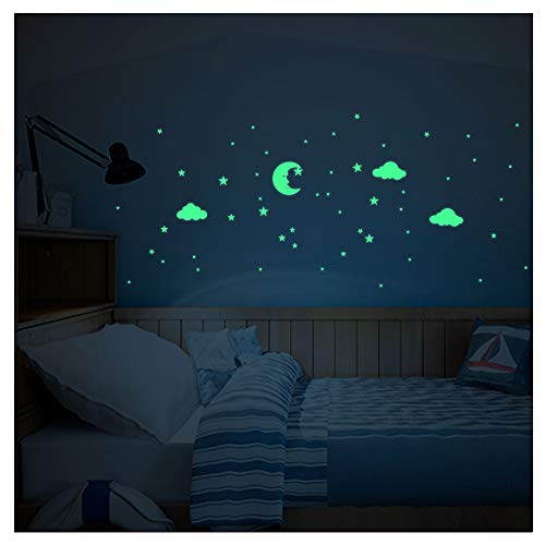 Fosforescerande självhäftande klistermärken | självlysande klistermärken för moln och stjärnor - fluorescerande väggdekoration | 25 x 50 cm