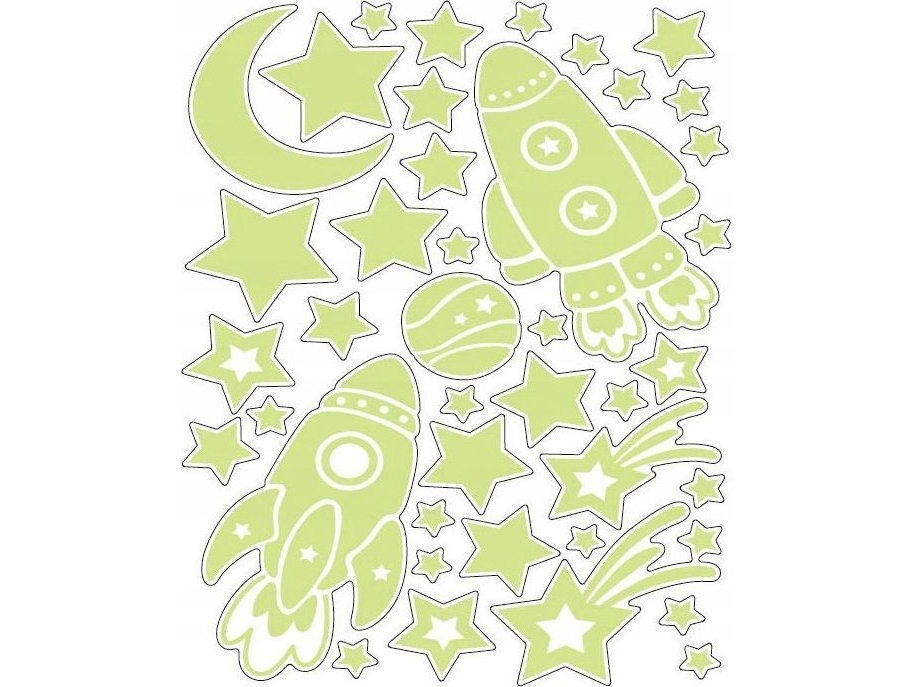 Självlysande Klistermärken, Stjärn- och Flygplansmotiv Grön