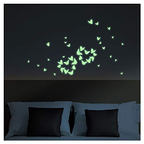 Atmosfäriskt självhäftande klistermärken | självlysande fjärilar klistermärken - fluorescerande väggdekoration | 35 x 35 cm