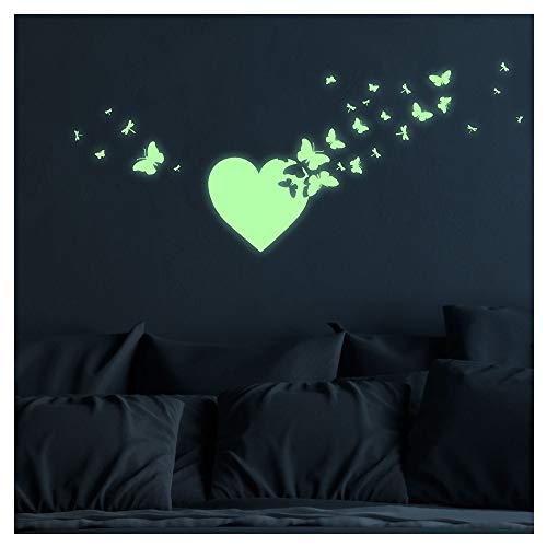 Ambiance självhäftande klistermärken fosforescerande | självlysande klistermärken hjärta och fjärilar - fluorescerande väggdekoration | 20 x 20 cm