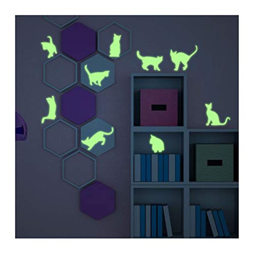 Fosforescerande självhäftande klistermärken | självlysande klistermärke paket med 9 katter - fluorescerande väggdekoration | fosforescerande klistermärke för barn - 45 x 55 cm