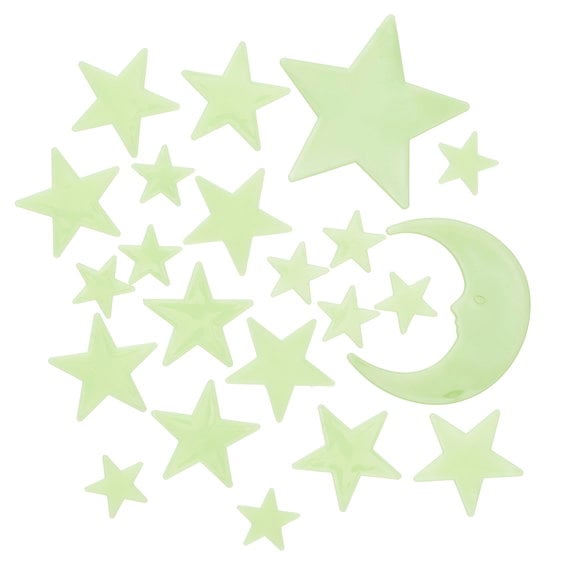 Självlysande klistermärken, glow in the dark måne och stjärnor, 24 st. Ø2,6–7,7 cm