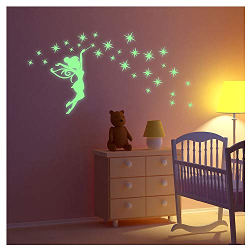 Fosforescerande självhäftande klistermärken | självlysande klistermärke älva och stjärnor - fluorescerande väggdekoration | 30 x 55 cm