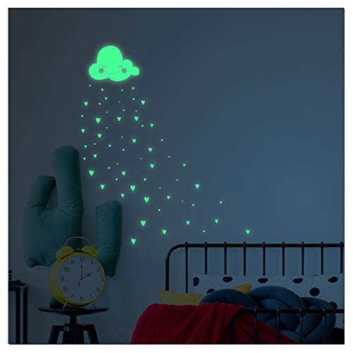 Fosforescerande självhäftande klistermärken | självlysande klistermärken för moln och hjärtan - fluorescerande väggdekoration för spädbarn och barn | 20 x 25 cm