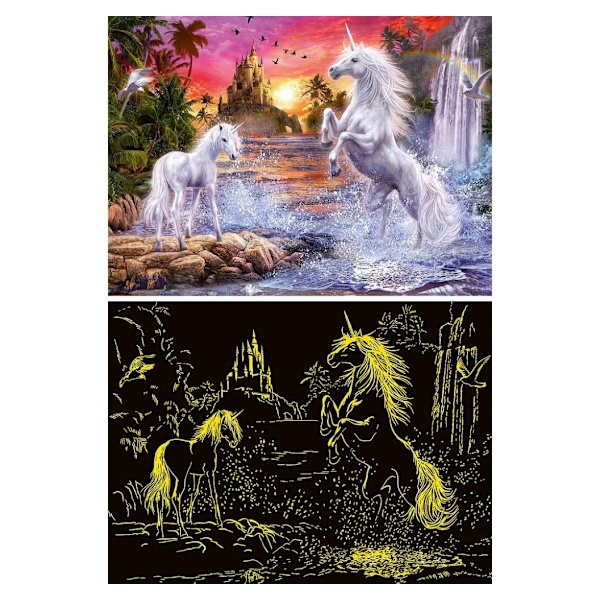 Ravensburger självlysande pussel 500 bitar: Enhörningar vid floden