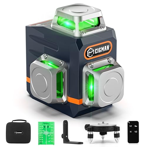 Professionell Grön Laser Nivå 3x360 °, CIGMAN Självnivellerande Laser, Arbetsområde: 30M, Med Fjärrkontroll, Magnetisk och Roterande Hållare, Inbyggt Litiumjonbatteri