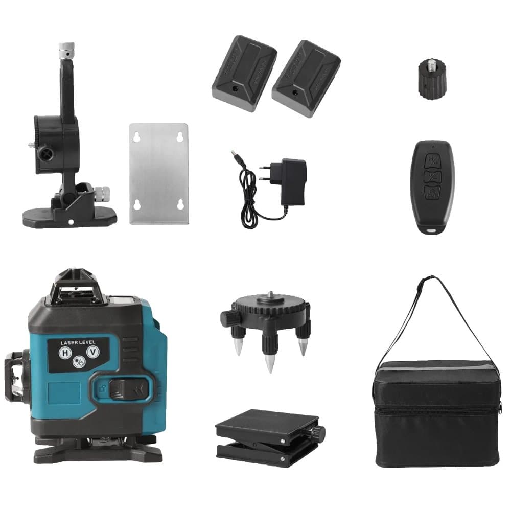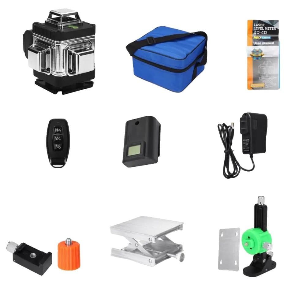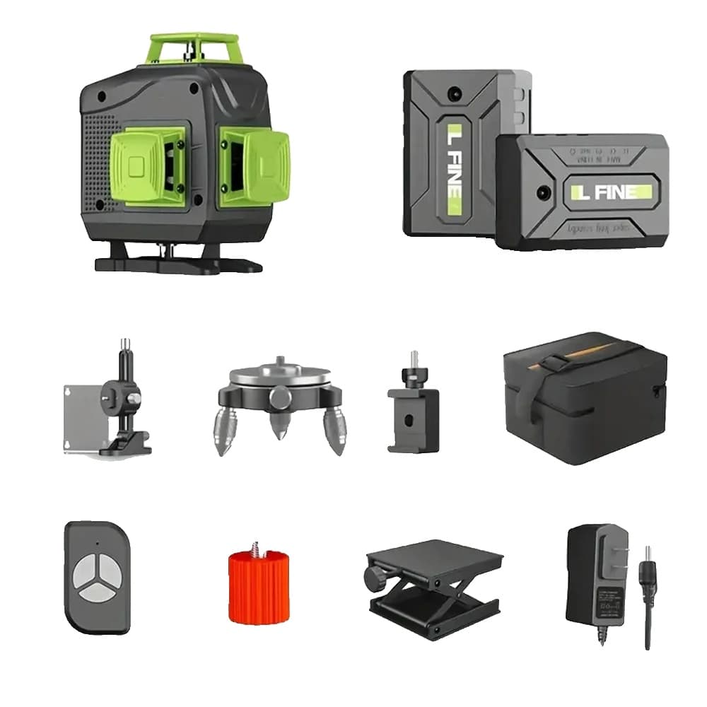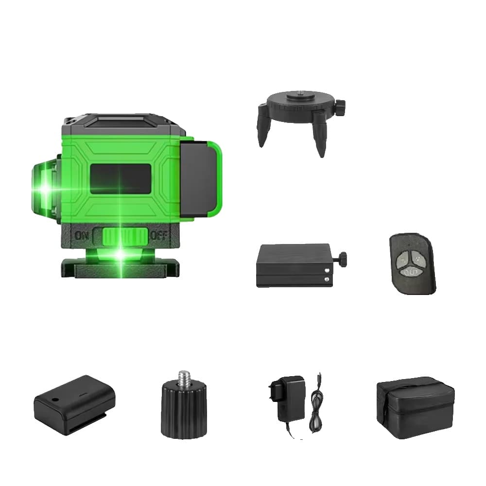 Laser nivåkit, 12 linjer, självnivellerande grön stråle, SET 3