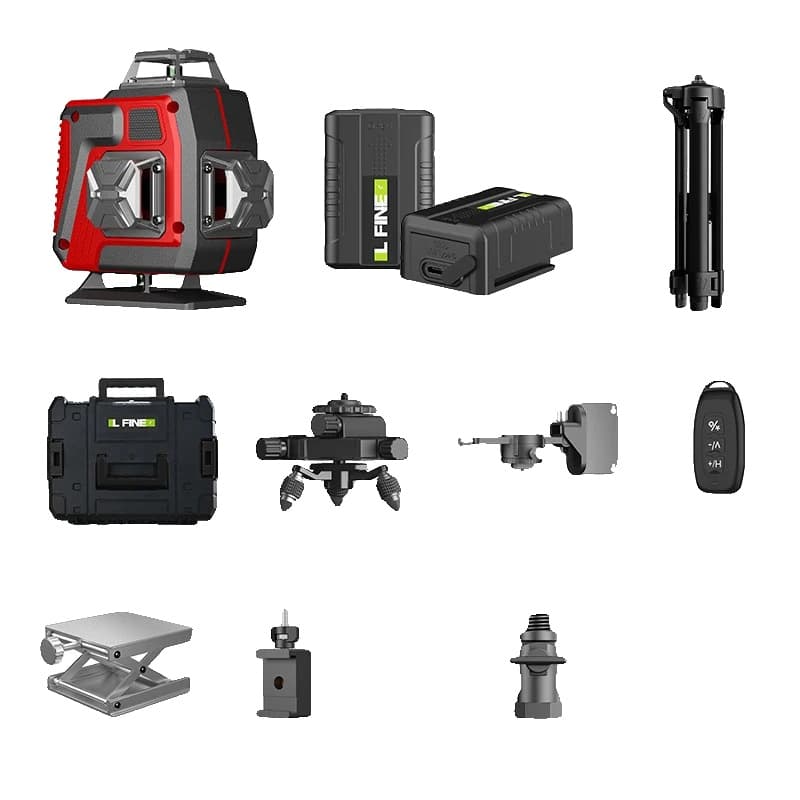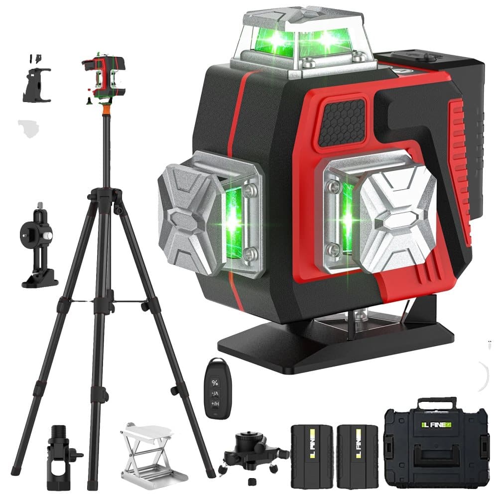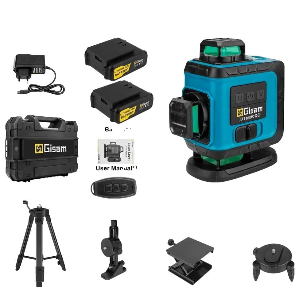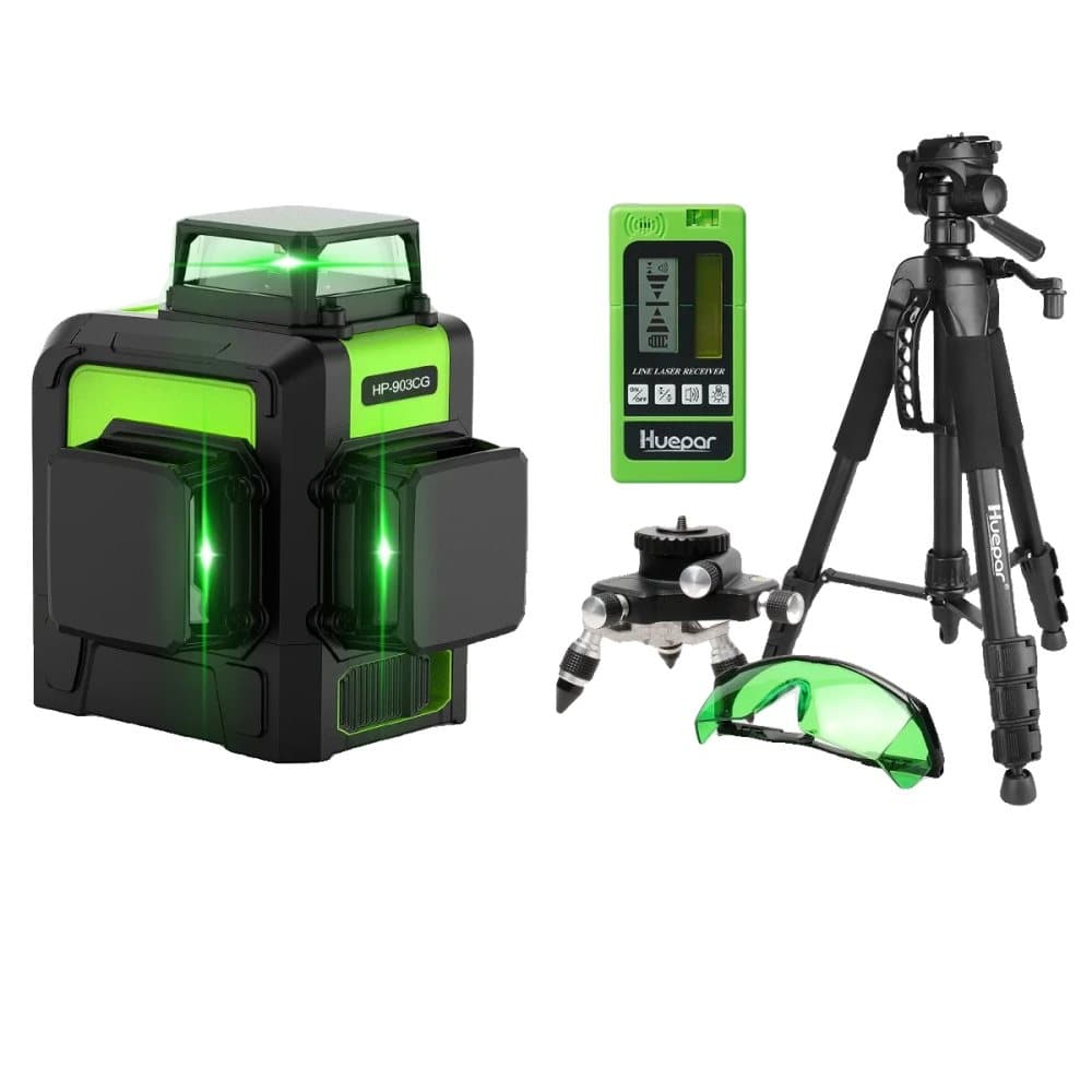 Laser nivåkit, 12 linjer, självnivellerande grön stråle, SET 3