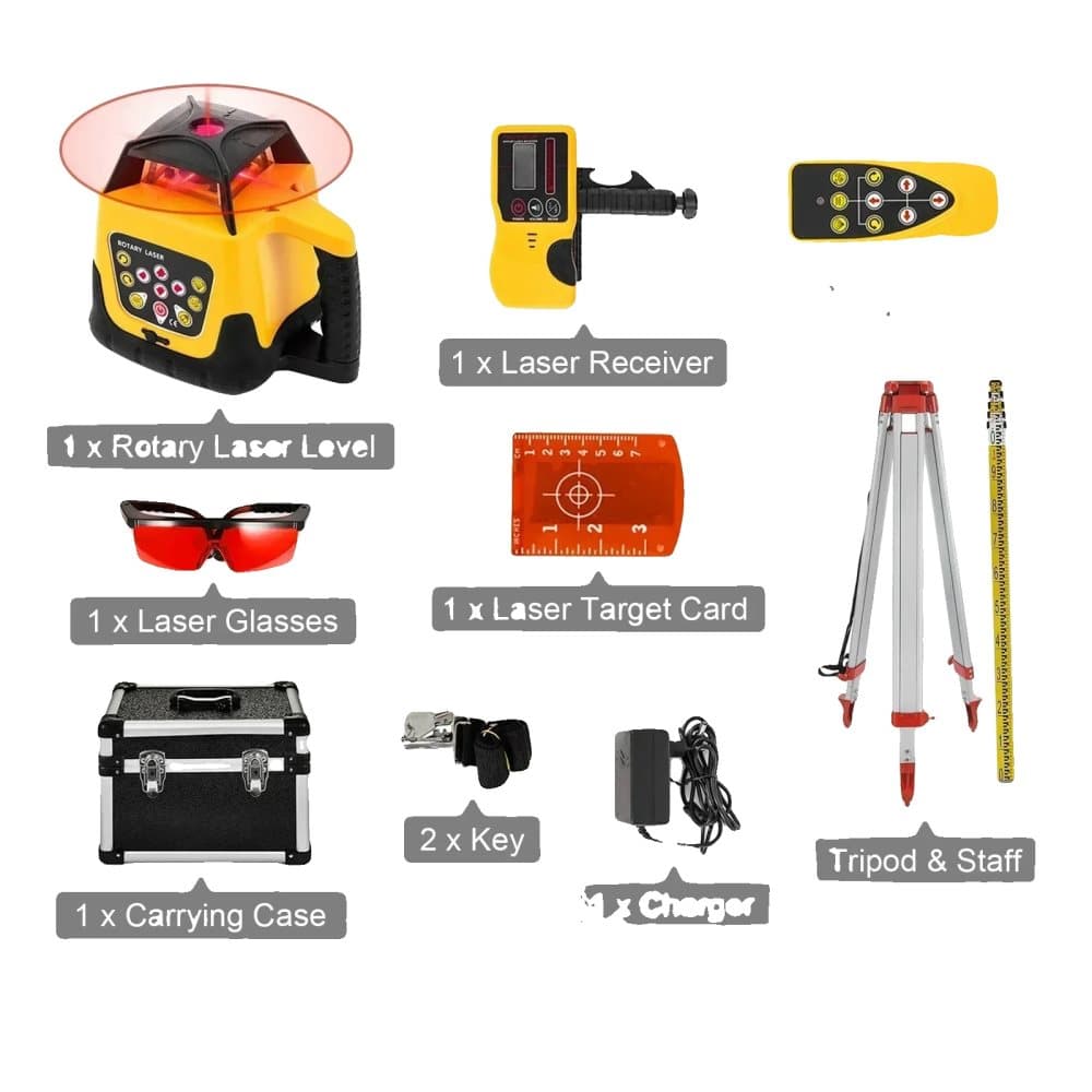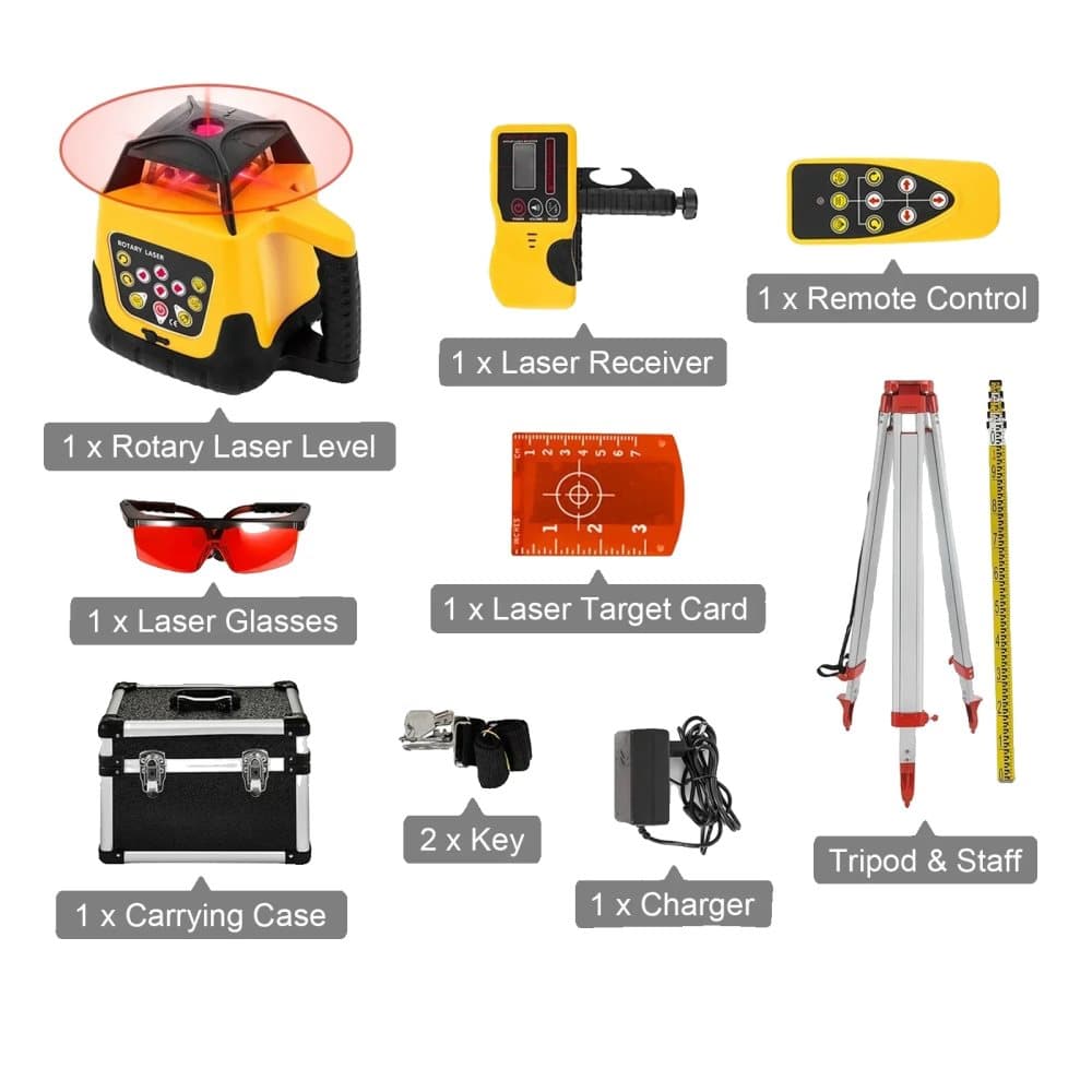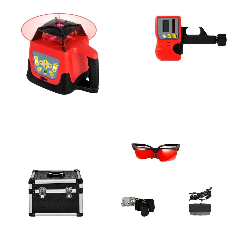 Rotary Laser Level, 360-Graders Skanning, Självnivellerande Mekanism,Röd Stråle Kit Set 1
