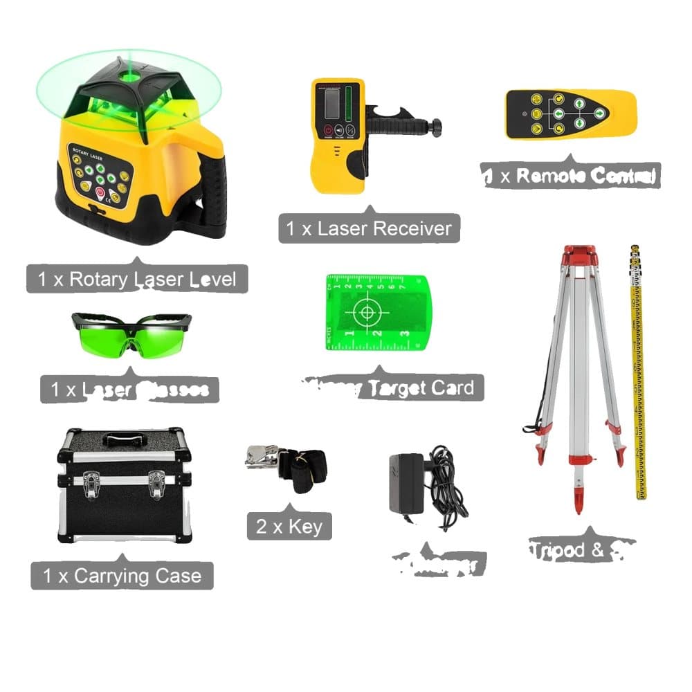 Rotary Laser Level, Hög Precision, Självnivellerande,Grön Stråle Kit Set 2
