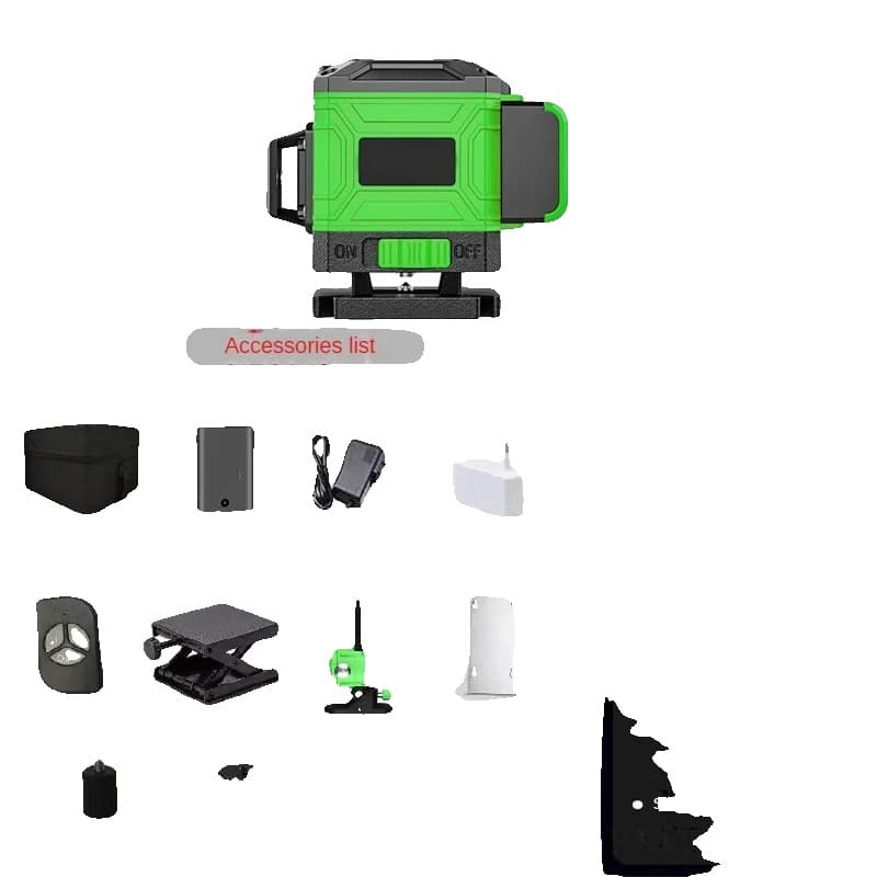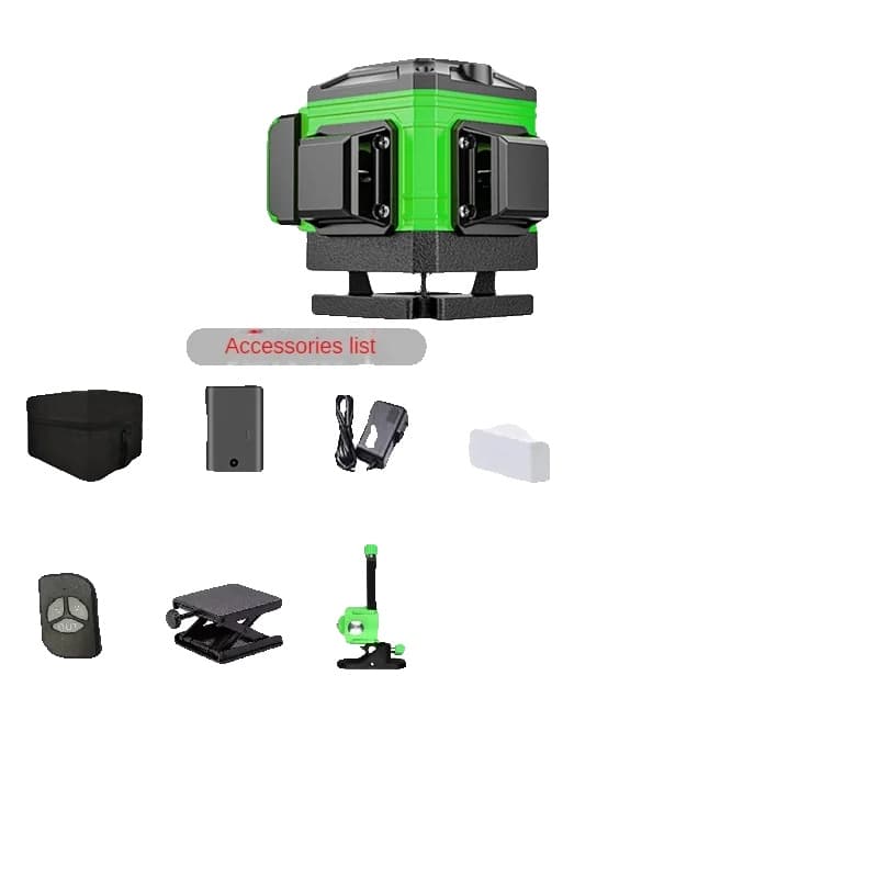 Laser nivåkit, 12 linjer, självnivellerande grön stråle,SÄTT 4
