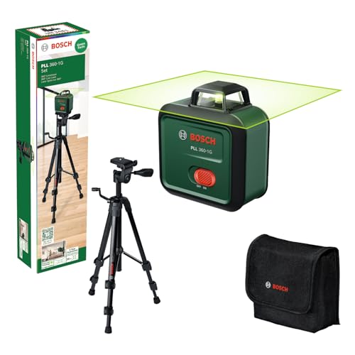 Bosch planlaser PLL 360-1G (360° grön laser, självnivellerande, ±0,4 mm/m noggrannhet, integrerat uppladdningsbart litiumjonbatteri, USB-C-laddning®, i kartong för e-handel)