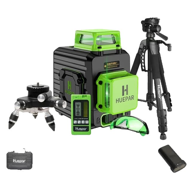 Huepar 360 Cross Line Laser med 12 linjer självnivellerande Cross Line Laser Leveler med 3D gröna strålar 30M med Pulse Mode Alignment Laser Tool, Lithium-Ion Battery 703CG