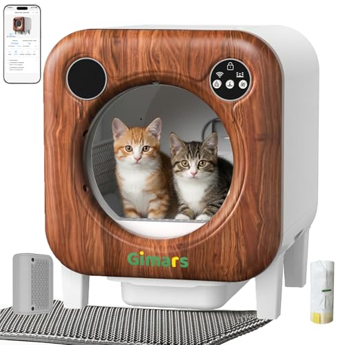 Gimars XXL 90 L självrengörande kattlåda med appkontroll, automatisk kattlåda med matta, soppåsar och steg, trippelsensorer och luktkontroll för kattungar, seniorkatter och multikatthem