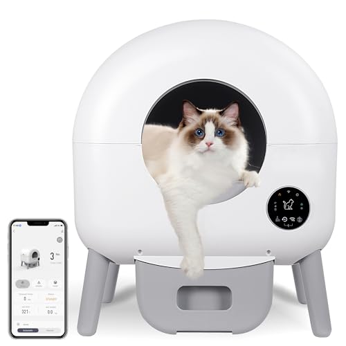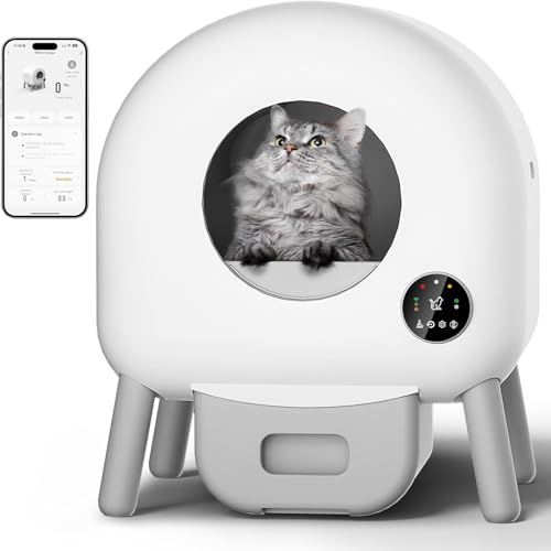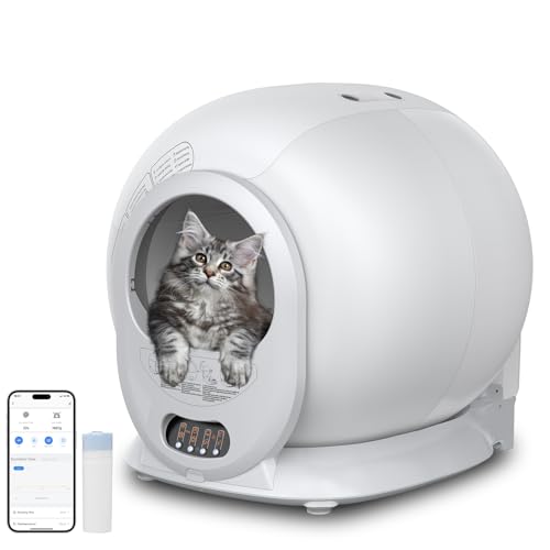 QraraZL Självrengörande kattlåda, automatisk kattlåda med appstyrning, Smart Health-monitor/jonisk deodorisering (kritvit)
