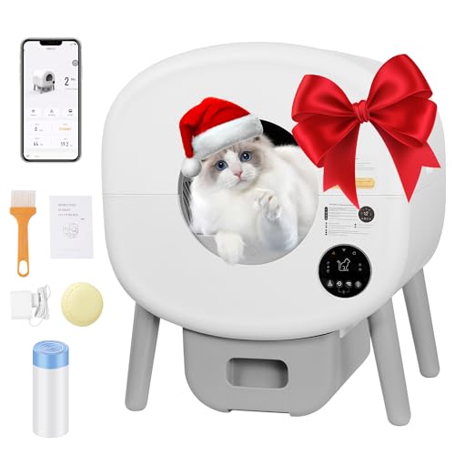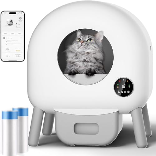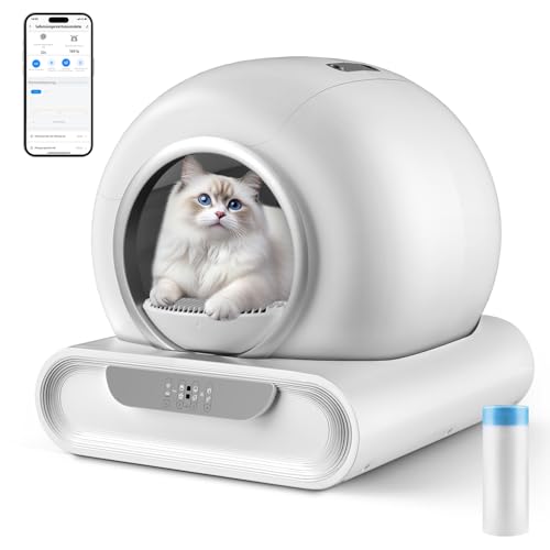 QraraZL Självrengörande, självrengörande kattlåda med APP-kontroll, automatisk kattlåda, smart hälsomonitor/jonisk luftfräschare (sopsäckar)