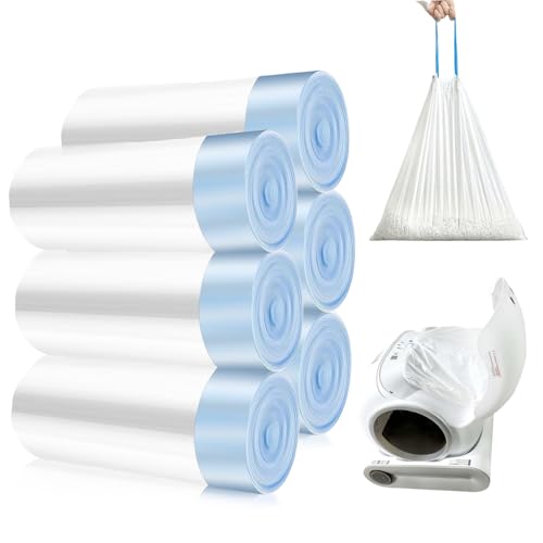 Sporgo soppåsar med bärhandtag 8 rullar: 160 stycken kattoalettpåsar självrengörande kattlåda med dragband, kattströ, kattlåda, påfyllningspåse för byte kattsand
