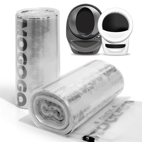 AMOGOPET Avfallspåsar, kompatibla med kattrobot 4 & 3, 50-pack foder för självrengörande kattlåda, 9-11 gallon kapacitet, förseparerade, genomskinliga, ersättningspåsar för kattsand