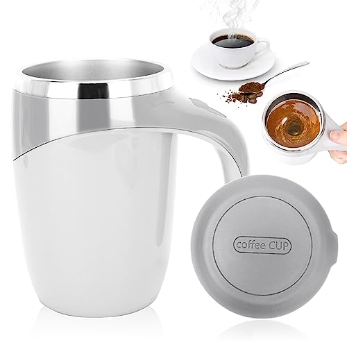 Elektrisk självrörande kopp, rostfritt stål automatisk magnetisk kopp, 380 ml används i kaffe, te, cocoa, mjölkkopp (vit)