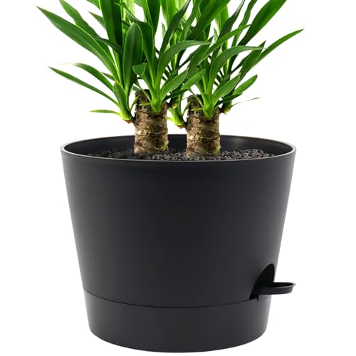 UOUZ 30,48 cm självvattnande kruka, plastplanterare för inomhusväxter och blommor, svart