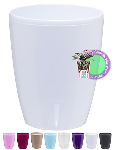 SANTINO orkidékruka D 15 cm självvattnande kruka med veke system och vattennivåindikator för inomhusbruk – vit – 2 l