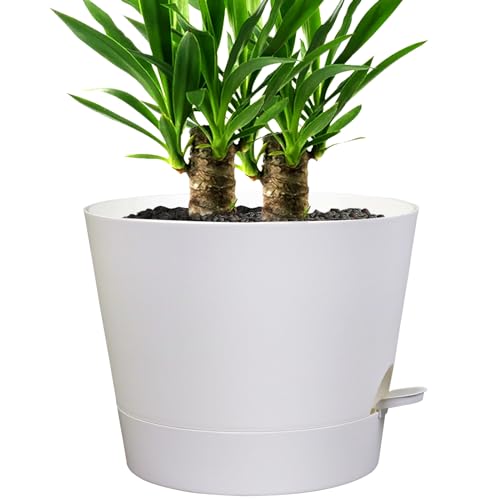 UOUZ 30,48 cm självvattnande kruka, plastplanterare för inomhusväxter och blommor, vit