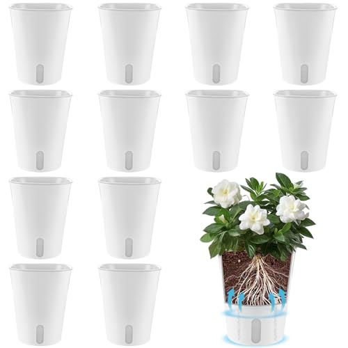 APACALI 12 stycken självvattnande blomkruka, 12,5 självvattnande kruka med vattennivåindikator, örtkruka kök med bevattningssystem, blomkruka för inomhus och balkong