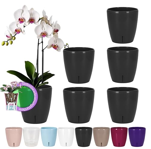 SANTINO 6 pack självvattnande kruka med veke system och vattennivåindikator för inomhusbruk, orkidékruka D 12 cm (antracit, 1,3 l)