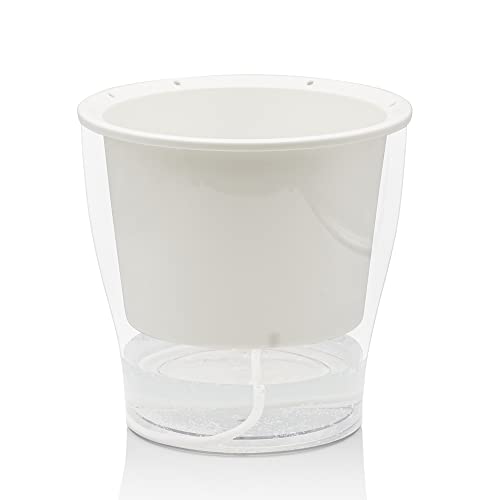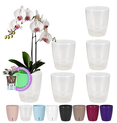 SANTINO 6 pack självvattnande kruka med veke system och vattennivåindikator för inomhusbruk, orkidékruka D 12 cm (vit, 1,3 l)