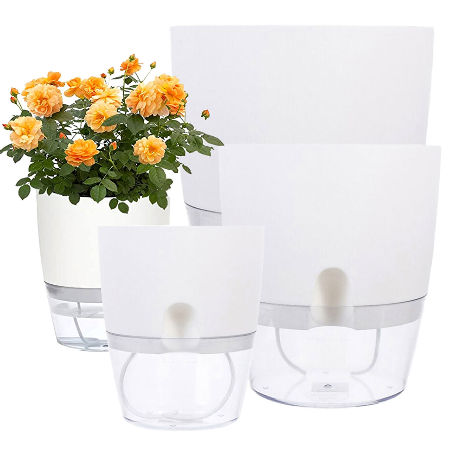 12 st självvattnande plastplanterare, 10 cm blomkruka i plast med inre kruka, självvattnande planterare vit blomkruka för örter, blommor, alla husväxter, suckulenter