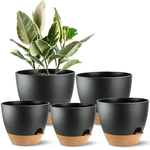 SE SUN-E Självvattnande växtkruka med dräneringshål, blomväxter krukor för alla inomhusväxter, modern svart plast självvattnande planterare suckulent kruka 5 st/set