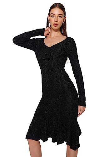 Trendyol FeMan sjöjungfru smal passform stickad klänning, svart, M, Svart, M