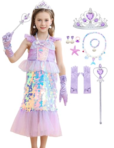 LiUiMiY Sjöjungfru kostym liten flicka paljetterad prinsessa Ariel klänning med cc tillbehör till halloween karneval födelsedagsfest