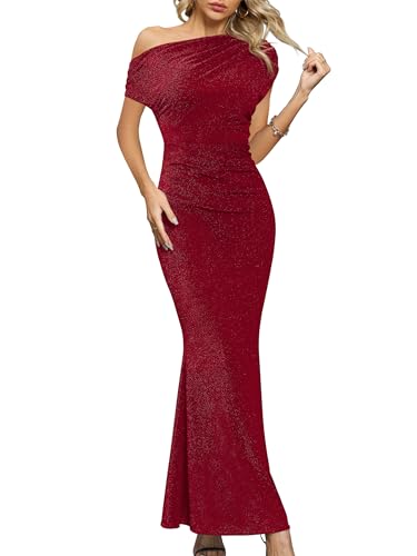 Missufe Dam aftonklänning cocktailklänning balklänning lång bröllop festlig elegant maxi sjöjungfru bodycon one shoulder klänningar, röd, XL