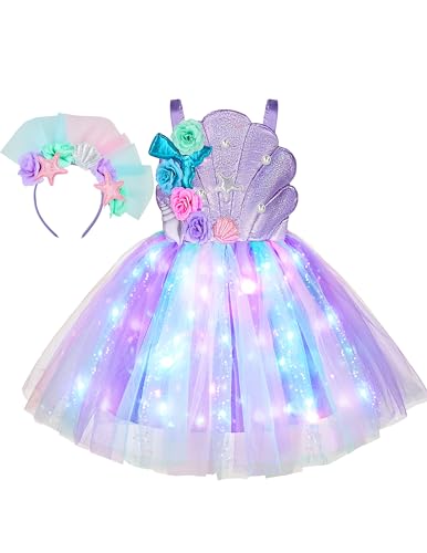 Spooktacular Creations halloween flicka sjöjungfru tutu klänning, snäcka sjöjungfru kostym, LED barn prinsessklänning för Cospaly party, Ljuslila, Small (5-7 yr)
