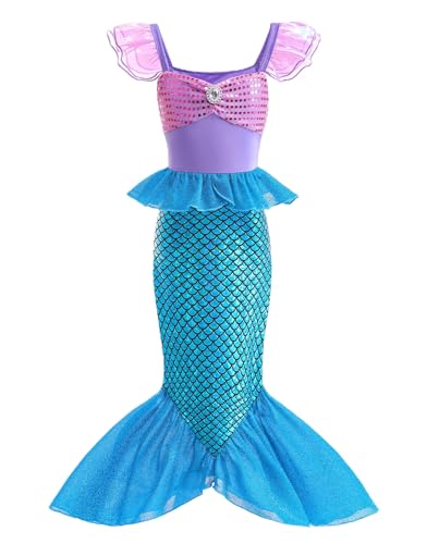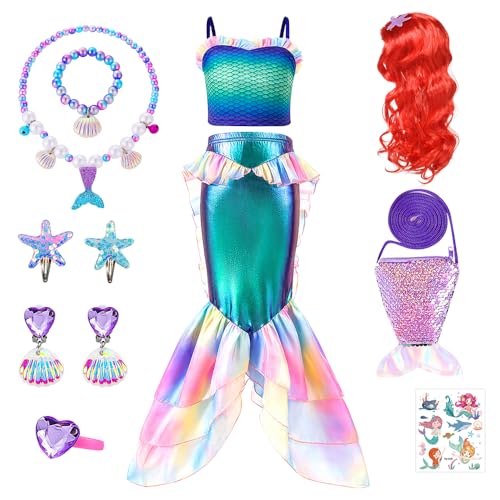 LiUiMiY Sjöjungfrudräkt för flickor med prinsessan Ariel med tillbehör för flickor, halloween, jul, karneval, födelsedagsfest, 6–7 år (etikett 140)