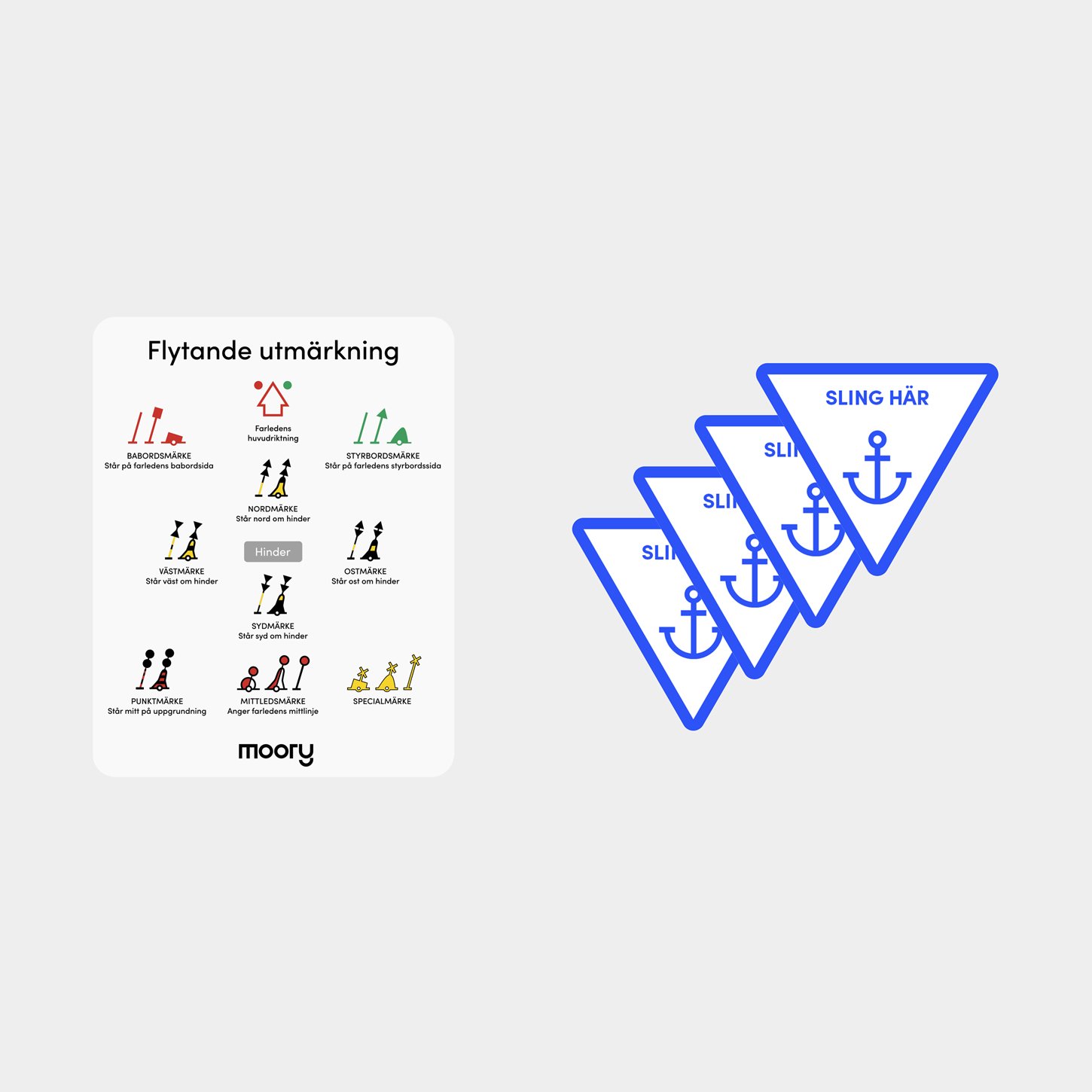 Moory Klisterdekaler Sjömärken & Sling här, svenska, 14 x 11 cm (1 styck) + 5 4.4 (4-pack)