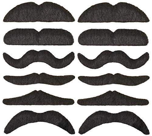 12-delat set falskt mustasch självhäftande skägg svart att fästa | Oliba för vuxna och barn | Kostymtillbehör för karneval och karneval