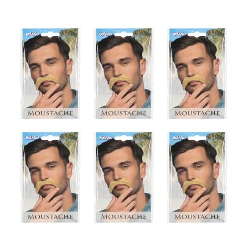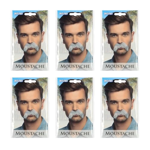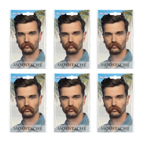 Boland – mustasch för limning, 6 stycken i set, falskt skägg för karnevaldräkt, temafest eller karneval