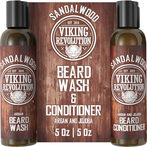 Viking Revolution skägg schampo & balsam set – mjukar, jämnar ut och stärker skäggtillväxten – naturlig sandelträdoft – presenter för män – 2 x 150 ml