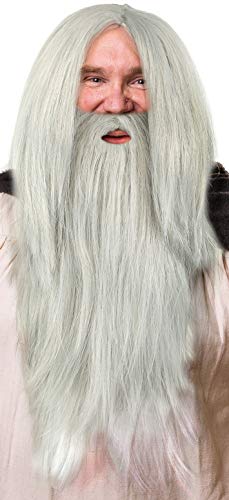 Trollkarlsperuk i grått i set med grått skägg för män & kvinnor Magiker Trollkarl Gandalf Merlin Karneval