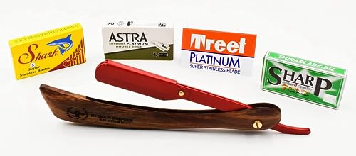 Razor Blades Club Mars Free Hand Razor från Roman Empire Shaving | Professionell rakhyvel för män barberare för skägg, mustasch och sidrätter med set med 20 blad (Astra-Derby-Shark-Treet)