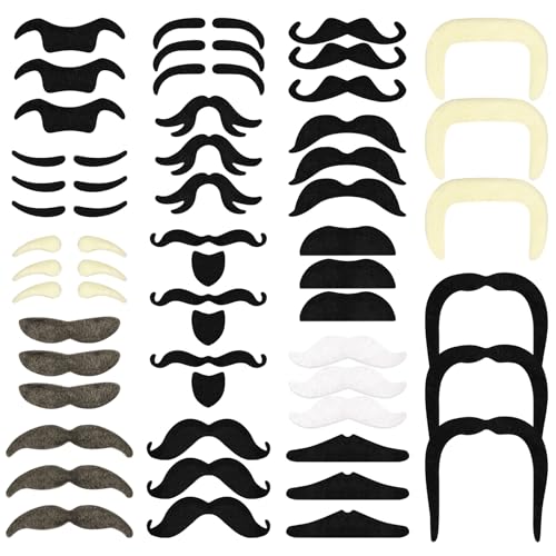 AUYAO Mustasch självhäftande set 48 st självhäftande falska mustascher ny falsk mustasch falska skägg för fest julfest födelsedag halloween temafester maskerad D