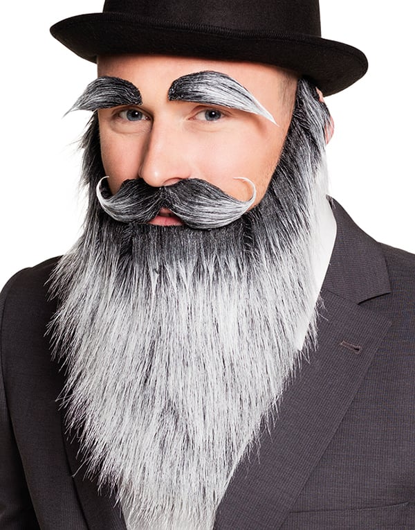 Grått och Svart Set med Skägg, Mustasch och Ögonbryn