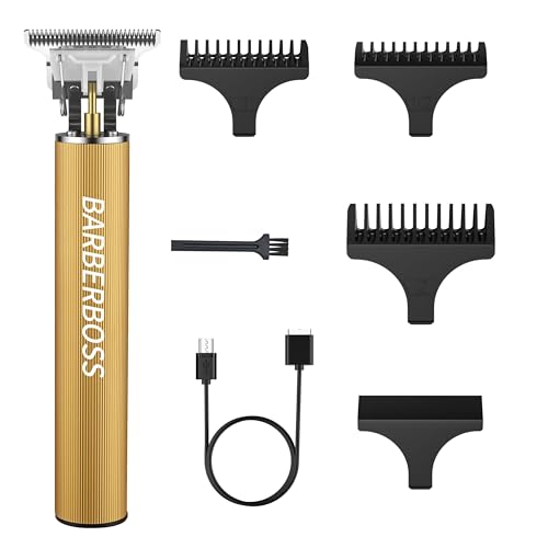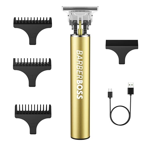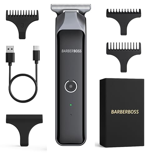 BARBERBOSS Sladdlös skägg- och hårtrimmer för män, lätt T-bladklippare, 3 guidekammar, mäns detaljgroomer, USB-uppladdningsbart groomingverktyg för ansikte och hårfäste