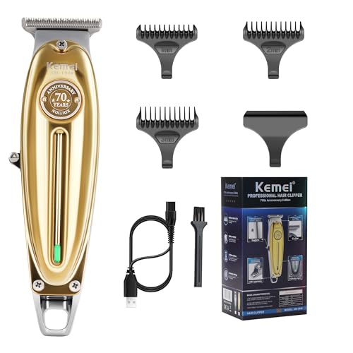 KEMEI Professionell skägg- och hårtrimmer för män, sladdlösa T-bladtrimmare, elektriska hårklippare för frisörer och stylister, heltäckande grooming-modell 1949 guld
